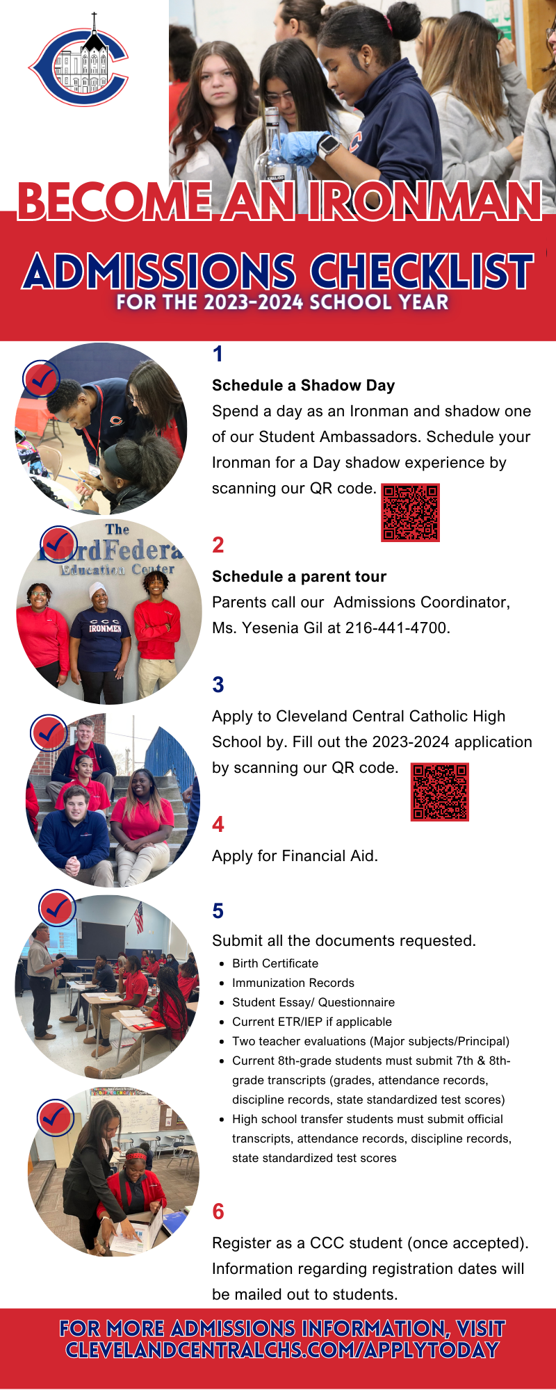 If you have any questions, please contact our Admissions Coordinator Ms. Yesenia Gil at 216-441-4700 x. 233 or email admissions@ccc-hs.org.